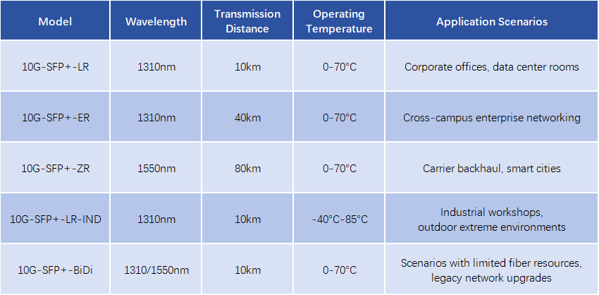 10 Gigabit single-mode optical modules have a wide range of applications and can handle key scenarios: