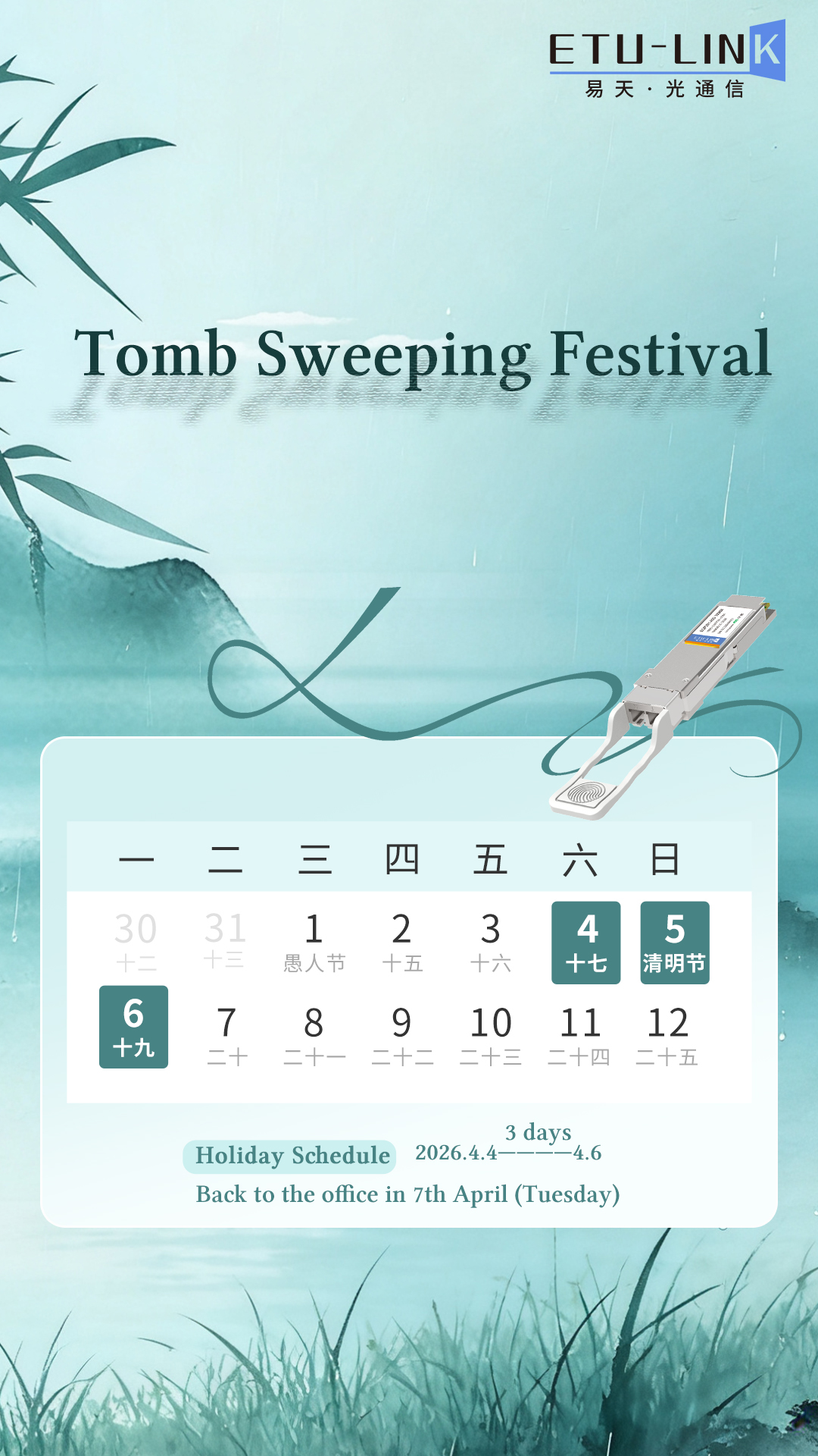 Notice of Tomb-Sweeping Festival Holiday 2026
